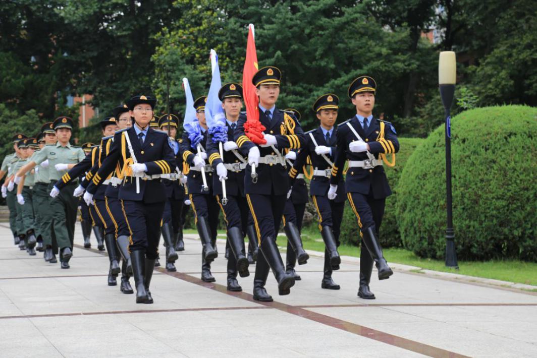 校学生国旗护卫队队长舒严同学宣布升旗仪式开始。国旗护卫队队员们军姿挺拔、目光坚毅,护卫着鲜红的国旗和蓝色的院旗、校旗,迈着整齐而矫健的步伐走向旗台。伴随着庄严的国歌和校歌,旗帜冉冉升起,激发了在场师生民族荣誉感、时代的责任与使命感。