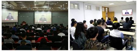 部分机关部处负责人、青年教师代表、“六有”大学生“青马计划”班学员和青年学生,在水上报告厅观看了纪念大会盛况。在西活学术报告厅、校团委会议室,学校各级团学骨干和青年学生集中观看纪念大会。
