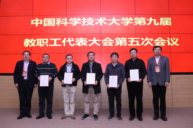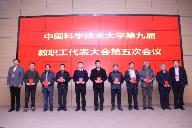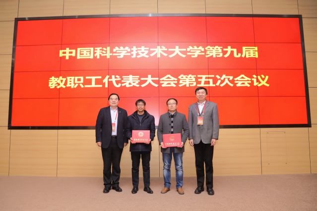 12月18日下午,九届五次教代会举行颁奖仪式,表彰2018年度杰出研究校长奖、第十一届平凡基金-教育奖、第六届青年教师教学竞赛一等奖以及九届四次教代会优秀提案奖的获得者。校党委书记舒歌群、校长包信和为获奖者颁奖。