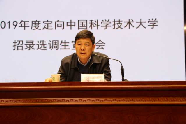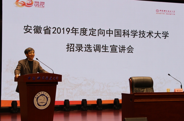 朱春旭对我校为安徽经济社会发展和高素质人才培养做出的贡献表示衷心感谢。他指出,中国科大为安徽经济社会发展输送了大批高素质人才,充分体现了一流大学的社会责任感和历史使命感。安徽省高度重视选调生工作,起步早、连续性强,并不断创新,为选调生成长搭建了很好的平台。他重点介绍了2019年安徽省面向我校定向招录选调生的政策,以及安徽的人文历史、自然景观、区位条件和科技资源,诚挚地邀请我校学子在安徽干事创业圆梦,为建设现代化五大发展美好安徽贡献青春力量。