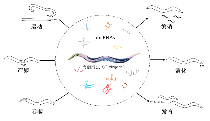 他们对155个lincRNA敲除突变体进行六个方面表型的筛选发现,23个lincRNA突变体分别在其中一个或者两个生理表型上具有不同程度的缺陷。通过对秀丽线虫不同发育时期的转录组测序进行分析,研究了lincRNA 和mRNA共表达情况,同时建立了lincRNA和microRNA共表达及调控网络。通过对秀丽线虫不同发育时期近300个转录因子的分析来探究转录因子在线虫不同发育阶段对lincRNA表达的调控,进而研究了这23个lincRNA行使其生理调控功能的机理。