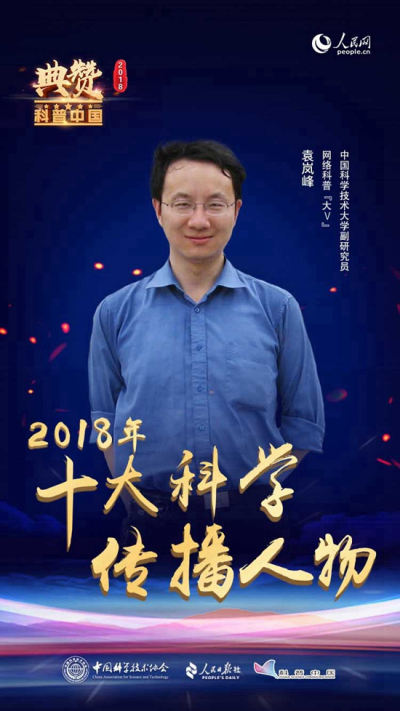 袁岚峰当选“典赞·2018科普中国”十大科学传播人物