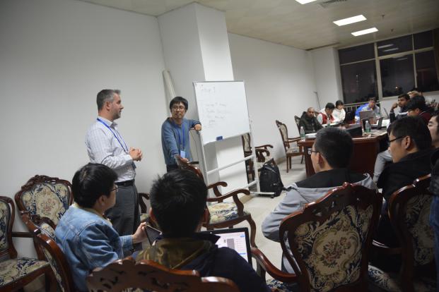 在下午的辅导教学中,与会师生在专家的指导下,现场学习使用MadGraph, FeynRules, Pythia, Delphes, MadAnalysis等相关计算模拟软件。在随后的问答环节,所有学员被分成三个小组,就疑惑问题或感兴趣的话题与专家进行热烈讨论和交流。