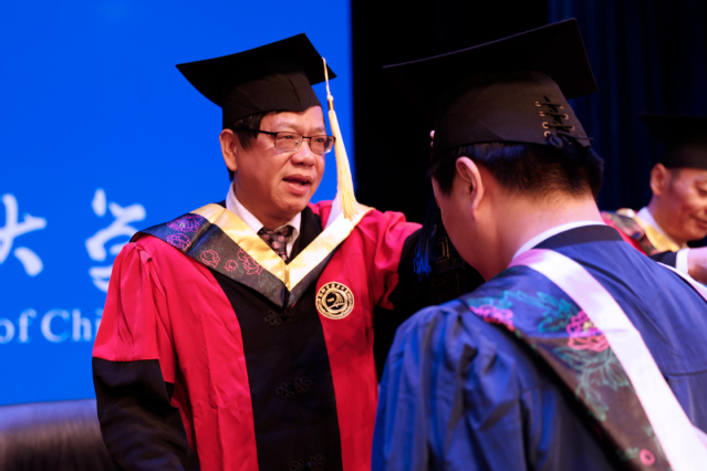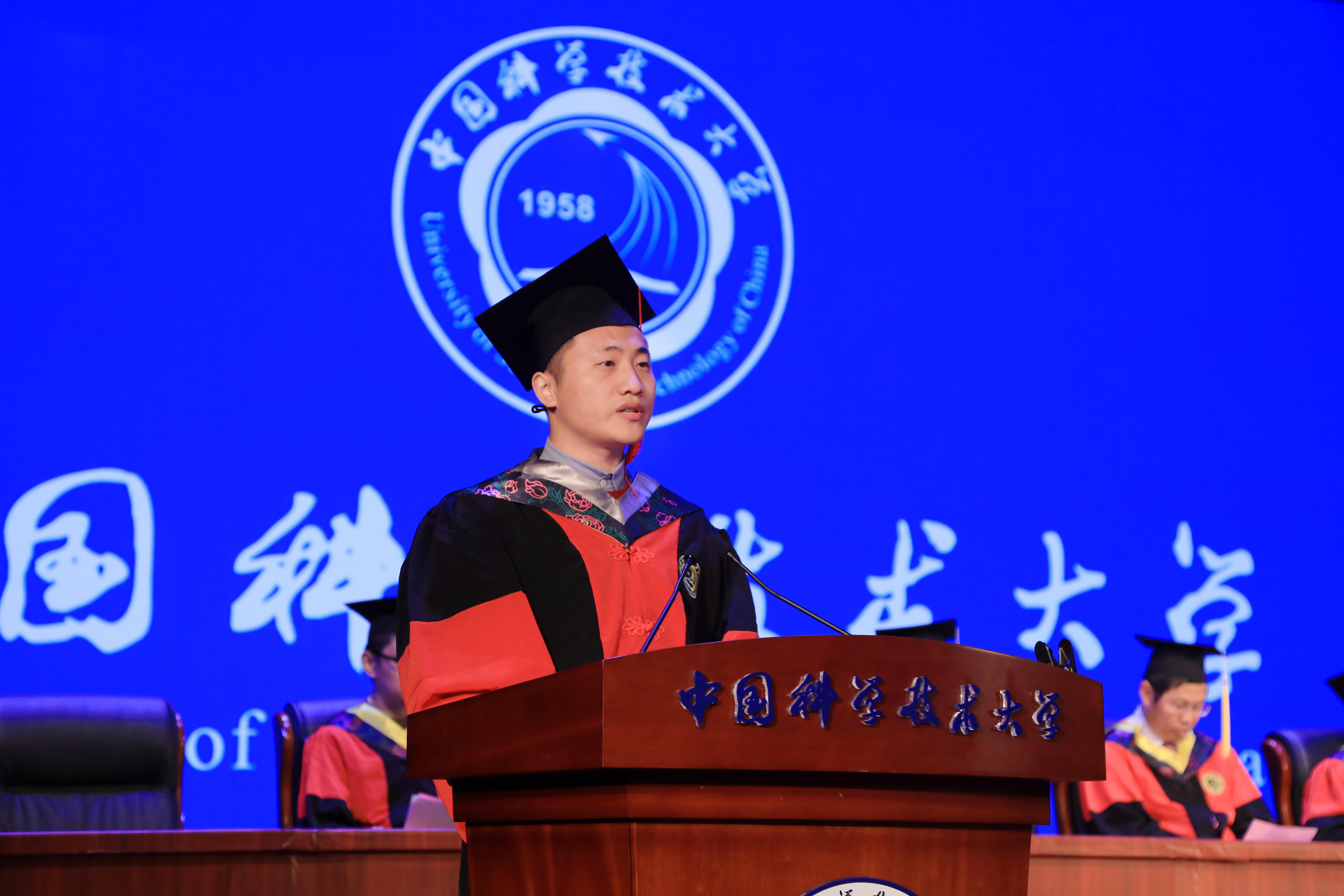 导师代表、国家国家创新人才计划青年项目、求是杰出青年学者龚晨教授向所有获得学位的同学们表示祝贺。他说,在未来的人生道路上,同学们要勇当实业报国的先行者,要有自主创新的豪情,要有基本的职业道德操守。希望同学们为人有精神、有气节、有追求、有梦想,在工作中要敢攀登、创一流,勇于迎难而上,不能轻言放弃,秉承中国科大校训精神,为母校争光添彩。