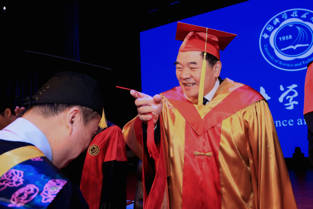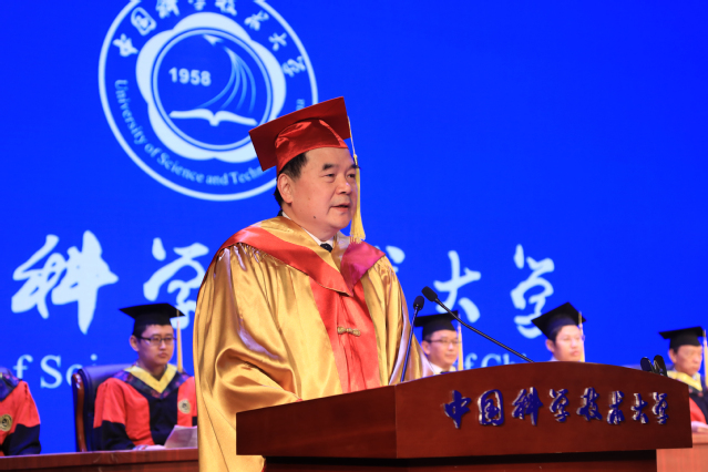 包信和以《传承科教报国、追求卓越的精神——做新时代的奋进者》为题向毕业生们作临别寄语。他说,同学们即将开启人生的新征程,希望同学们带着自信拥抱新时代,带着理性认识新时代,带着责任建设新时代,努力做一名新时代的奋进者,做真正的“强国一代”。