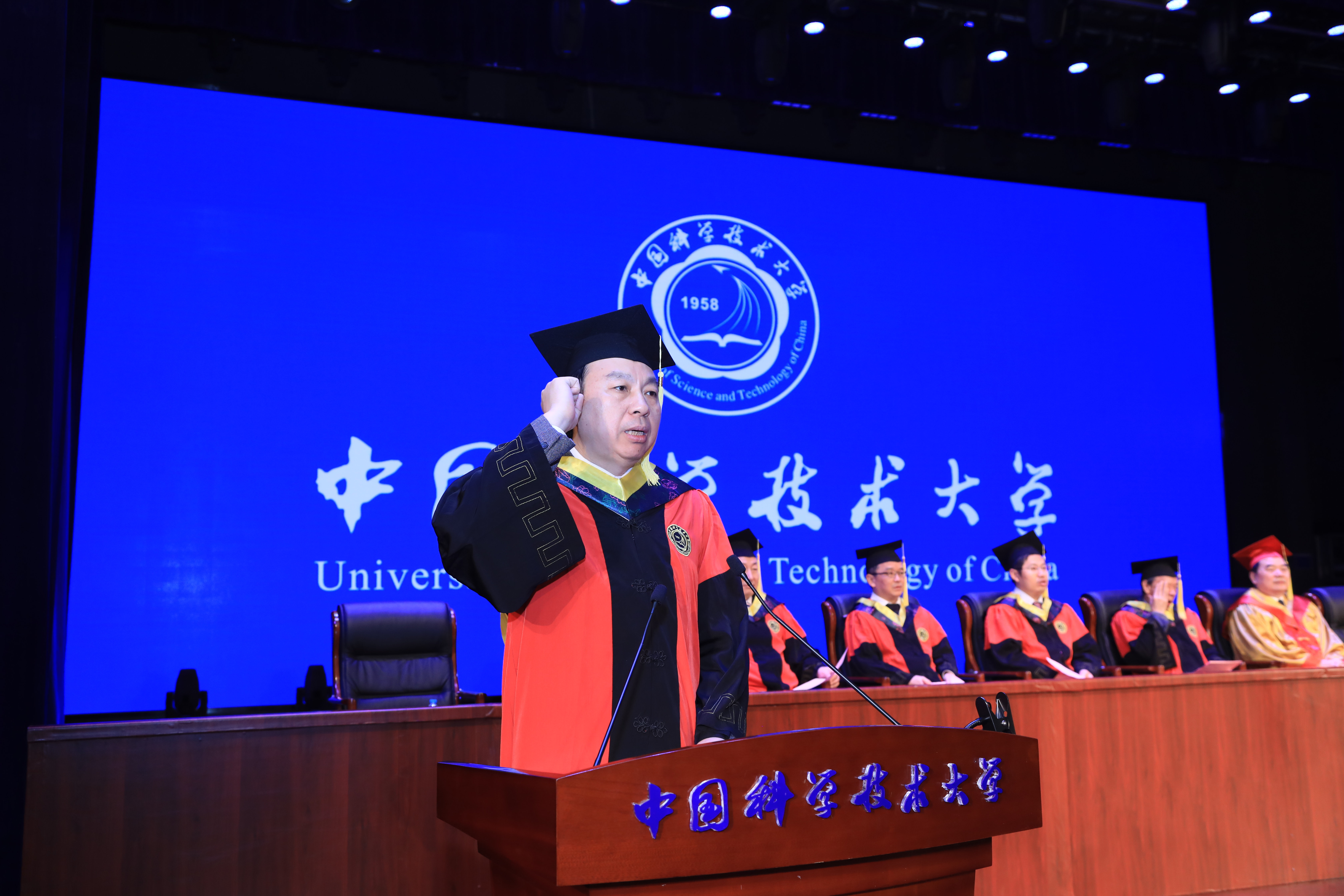 随后,校学位委员会主任、校长包信和院士致辞,代表学校全体教职员工衷心祝贺同学们顺利完成学业、获得学位,并向毕业生的老师和亲友们表示衷心感谢。