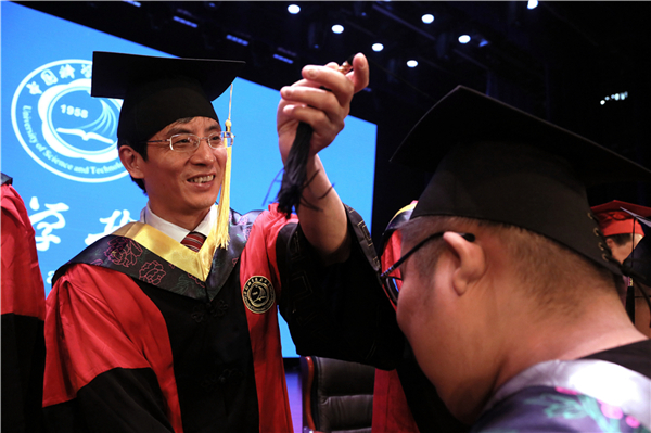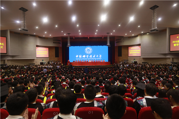随后,陈初升副校长宣读了学校关于授予2018届本科毕业生学士学位、表彰各类优秀毕业生的决定。汪楠等244名同学荣获“2018年安徽省普通高等学校品学兼优毕业生”称号,邓宇皓等965名同学荣获“2018届校优秀毕业生”称号,学校对自愿到西部、到基层、到部分国家重点单位工作的彭绣球等80名同学,到中国科学院系统所属研究单位工作的丁冬生等30名同学,以及荣获2017-2018学年度先进毕业班集体称号的40个班级予以表彰。