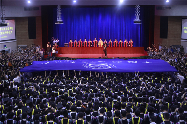 6月23日上午,我校2018届本科生毕业典礼暨学位着装授予仪式在东区大礼堂隆重举行,校领导,各院、系和机关有关部门负责人,本科毕业班班主任、2018届全体本科毕业生及其亲友共同见证了这一激动人心、庄严神圣的美好时刻。