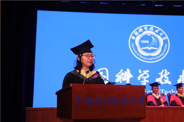 2018届毕业生代表、信息学院自动化系陆书文同学满怀留恋和不舍回顾了在科大学习、生活的点滴细节,畅谈了四年来的收获和感悟,深情地表达了对母校的感恩,对老师、对父母、对同学的感激之情。她表示,作为ustcer,将传承中国科大谦逊、严谨和踏实的作风,勇于承担科大人应有的担当和责任,并祝福母校60岁生日快乐,祝福全体毕业生们前程似锦。