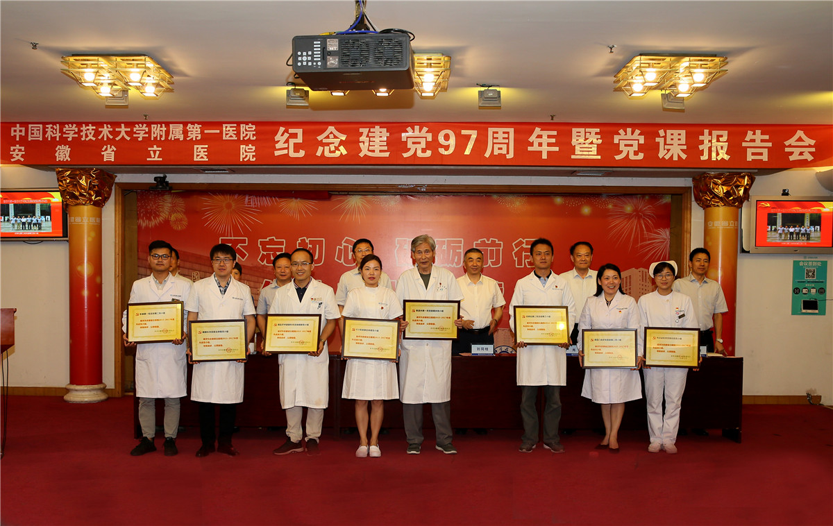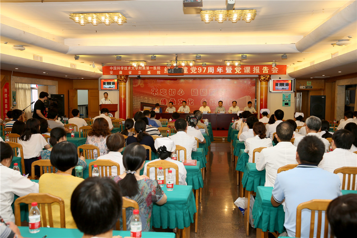 会上,刘同柱带领大家回顾了党的光荣历史,回顾了2017年医院取得的各项成绩。他强调,当前和今后一个时期,是医院发展大有作为的机遇期,是转向内涵建设的攻坚期,是实现创建国家区域医疗中心的决胜期,在省委省政府的坚强领导下,在中国科学技术大学和省卫计委双重管理下,全院党员干部职工一定要坚定信念、勇于担当,推动我院在新起点上实现新跨越。对此,刘同柱向各级党组织和全体党员提出了三点意见:一要旗帜鲜明讲政治,坚持不懈抓学习,把学懂弄通做实党的十九大精神作为首要政治任务,牢固树立“四个意识”,全面提高新时代省医人的政治站位。二要一心一意谋发展,蹄疾步稳抓改革,坚定“一流医院”目标不动摇,进一步深化校院融,久久为功,全面推动省医发展新突破。三要聚精会神抓党建,充分发挥院党委领导作用和政治作用,持之以恒优化政治生态,狠抓基层党组织标准化建设,推动全面从严治党向纵深发展。