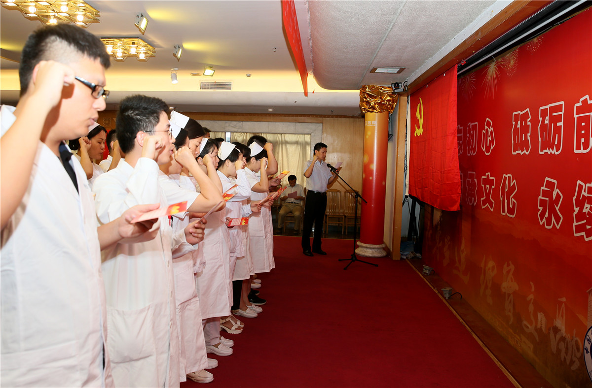 新党员代表西区机关支部魏东华作了发言。他说,工作31年以来,从一名临床医生到医院的管理岗位上,经过在工作中不断学习和磨炼,他总结出一个道理,那就是人活着要有信仰,加入中国共产党成为一名党员就是他的信仰。随后,大会在《国际歌》庄严雄浑的旋律中告一段落。