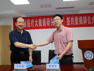 5月15日上午,中国科学技术大学附属第一医院(安徽省立医院)、大数据分析与应用安徽省重点实验室共建“智慧医疗大数据研究中心”协议签约暨揭牌仪式在附一院举行。副校长朱长飞、科研部副部长朱霁平、大数据学院常务副院长陈恩红、副教授徐林莉,附一院党委书记刘同柱、院长许戈良、副院长严光出席会议,信息中心、医务处、科研处、院办、医学工程处、门诊部、病案室、党委工作部宣传科等职能部门负责人参会。仪式由严光主持。这是继附一院“肿瘤免疫研究治疗中心”成立后校院深度融合的又一重大举措。