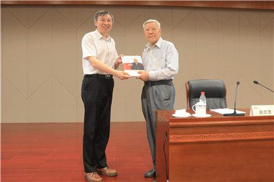 舒歌群首先代表学校对赵忠贤院士表示热烈欢迎,并赠送了赵院士在科大工作期间的影像纪念册。舒歌群表示,此次报告会是他第一次正式参加学校的重要活动,借此机会,他将和师生们一起接受科大精神文化的教育和洗礼。他指出,作为我党亲手创办的一所红色大学,中国科大为国立学六十年,励精图治,始终与党和国家同呼吸、共命运,“红专并进、理实交融”已经成为流淌在科大人血液中的精神。文化由内而外决定着一所大学的内涵和风格,影响着学生的品质和气质,而“创新、求实、拼搏”就是科大最鲜明的文化特征。在老一辈革命家和科学家的言传身教影响下,一代代科大人将科大文化薪火相传,生生不息,把“将红旗插上科学的高峰”作为毕生的梦想。学校在60周年校庆之际,传承自50周年校庆以来的传统,举办科大精神系列报告会,继续邀请老领导、杰出校友及德高望重的院士、专家来到我们身边,以自己的切身经历,讲述科大不平凡的创业历程,畅谈他们心中的科大精神和文化,将进一步凝练、传播科大精神和优良文化传统。