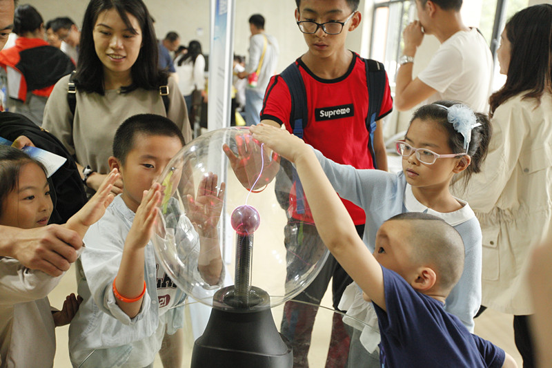 今年是物理科普点的“首秀”,展出了众多极具趣味性的科普实验,声悬浮技术通过声波的共振将小的微粒悬浮在空中,前来参观的同学可以自己动手操作感受;放置在桌上展示的等离子球更是吸引了众多孩子好奇围观,纷纷上前尝试触碰;参观者还可以自己动手操作显微镜探索美妙的微观世界,领略自然的神奇。