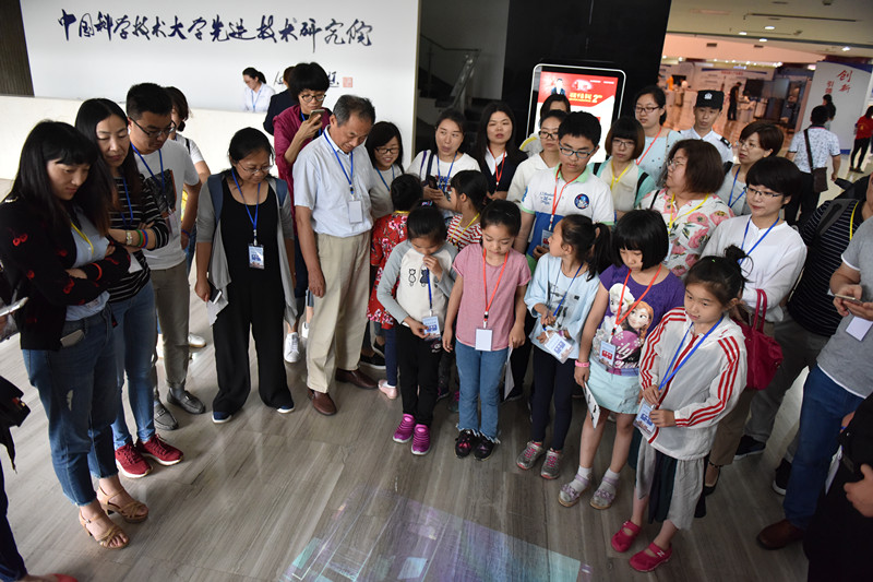 在中国科大先研院B0层科技创新成果展厅,涵盖智能语音、智能机器人、电子信息、装备制造、新材料、生物医药、无人机、智慧新能源、新能源汽车等方向的70余项科技创新成果,集中展示了科大先研院乃至安徽的高新技术产业发展实力。此次科普展新增植物工厂科普展区、新媒体技术展区,中国科大创客中心也面向公众开放,集中展示两年来优秀的创客项目。在互动区,人工智能机器人演示、趣味科技演示、3D打印互动游戏体验、无人机项目演示、VR场景体验等互动活动,吸引了众多市民及小朋友的参观体验。在未来中心报告厅,各类科普影院同时播放。大厅的活动现场,各类互动项目最为吸引公众的眼球,会背诗、能翻译还能陪你聊天的小曼,会唱歌会舞蹈、能翻跟头的小胖机器人各自大显身手,VR场景体验带你进入各类仿真场景,小朋友犹如亲临真实的动物园,射击爱好者给你真枪实弹的身临其境感。现场的气氛一片活跃,观众们在惊叹的同时更是跃跃欲试、参与其中。