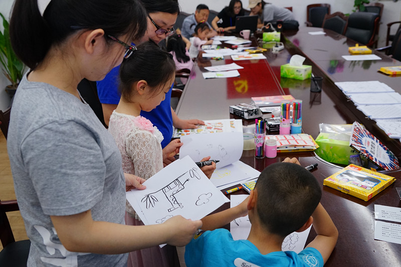 在出版社科普点,十几位小朋友围坐在二楼的会议桌前,用彩笔认真地涂画着。这是出版社在科技活动周期间推出的《美丽数学》创意涂色比赛,孩子们可以自由发挥画一些简笔画,也可根据现场提供的图形进行涂色。获得比赛前十名的小朋友将收到出版社赠送的精美画册和一套彩笔。出版社内还有精彩的趣味科普知识问答活动,吸引了很多小朋友参加。