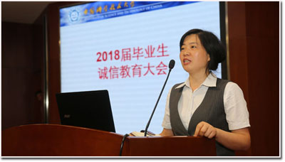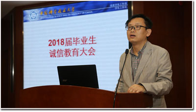 李峰指出,诚实守信是中华民族传统美德,也是践行社会主义核心价值观和培养“六有”大学生所要求的重要品质,诚信教育是学校毕业生主题教育活动的重要内容。学校历来都很重视对学生的诚信教育,并尽可能创造机会和条件为大家做好相关引导和服务。他提醒同学们务必对个人信用以及助学贷款的后续工作予以高度重视,防止因为个人的粗心大意产生不良信用记录。