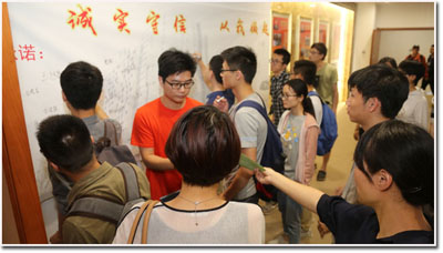 会前,同学们参加了“诚实守信 从我做起”承诺签名活动。