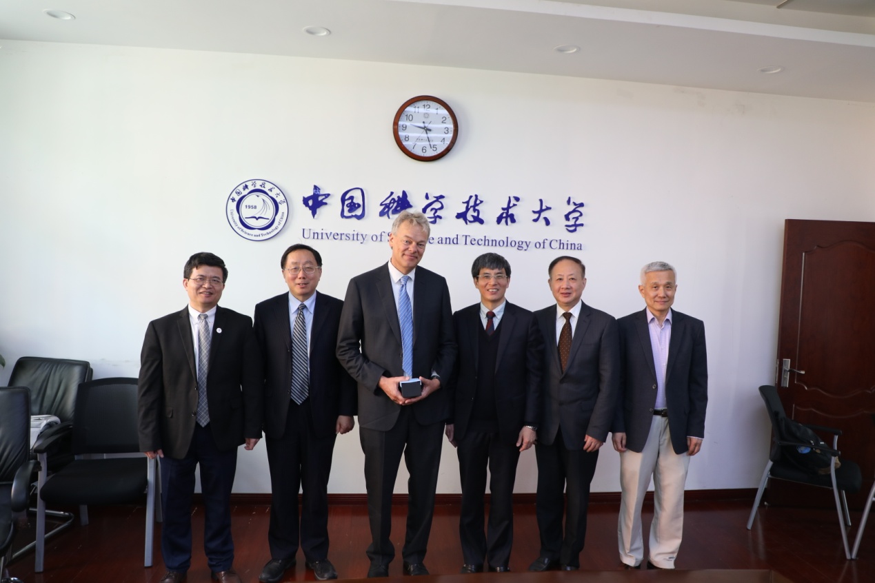 4月8日上午,应安徽省外国专家局和我校邀请,2014年诺贝尔生理学或医学奖获得者Edvard I. Moser教授访问我校,安徽省人力资源和社会保障厅党组成员、安徽省外国专家局潘亚群局长一行陪同访问。陈初升副校长会见了来宾,我校附属第一医院院长、党委副书记许戈良和生命科学学院申勇教授参加了会见。
