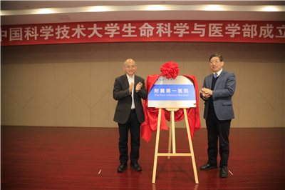韩启德与信长星为中国科大生命科学与医学部揭牌