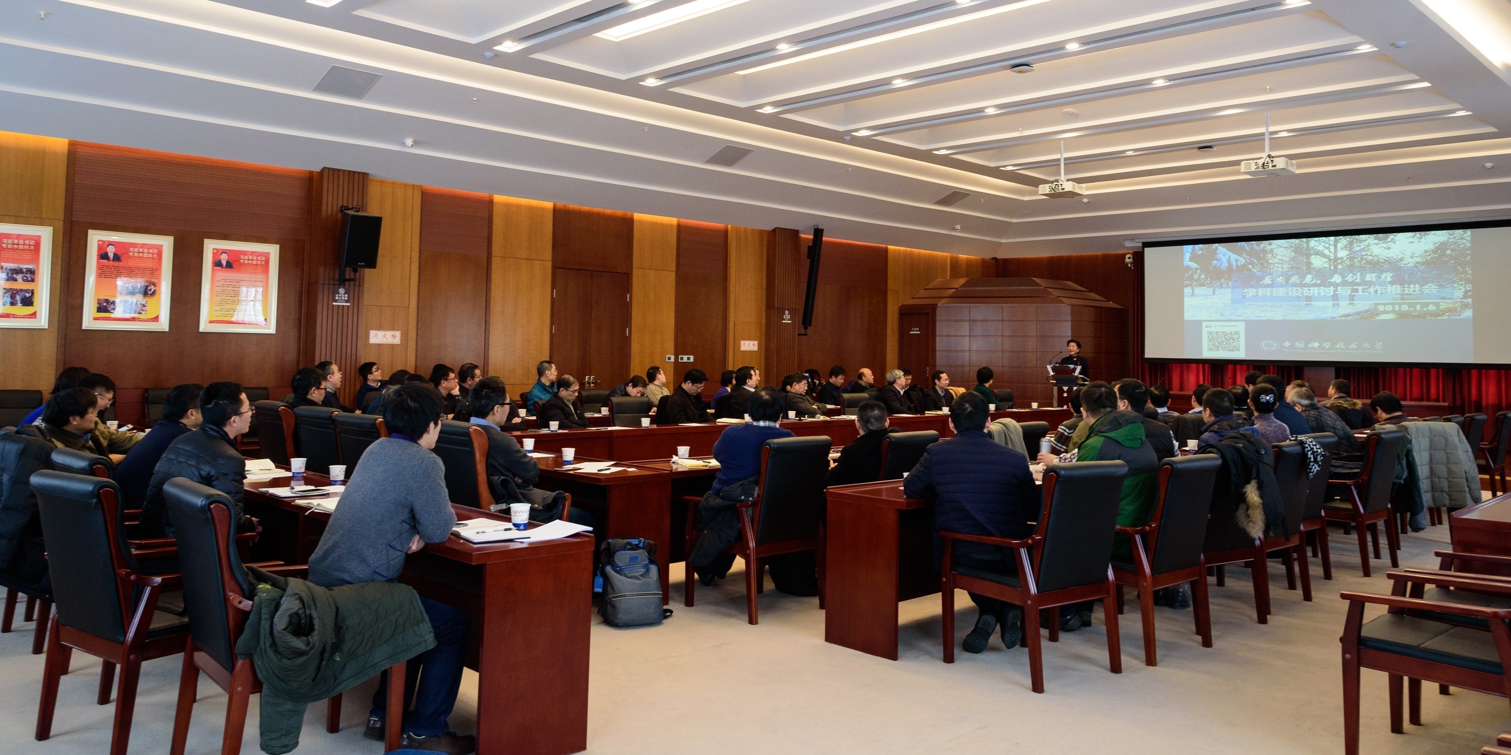 2018年1月6日上午,学校召开学科建设研讨与工作推进会,结合第四轮学科评估结果,深入分析并研讨我校学科建设和“双一流”建设现状及发展趋势,并就2018年度“双一流”工作重点进行部署。校领导许武、包信和、陈初升、周先意、朱长飞、蒋一、王晓平、黄素芳、杨金龙,学校“双一流”建设监理组长张淑林,各学科负责人、“双一流”建设工作小组成员及学科建设办公室、发展和改革办公室、发展规划处负责人及相关人员参加了会议。