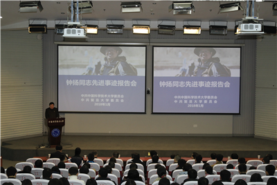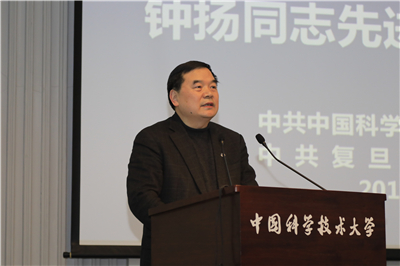 校党委书记许武在在讲话中充分肯定了钟扬同志的先进事迹和崇高精神。许武表示,钟扬同志1979年考入科大少年班,他继承了科大老一辈人艰苦创业,科教报国的优良传统,是科大的杰出校友;他也是一位忠诚的共产党员,是共产党人以身作则、敢于担当、无私奉献的先进典型;他是一名杰出的人民教师,为国家培养了许多优秀的人才。钟扬同志是科大的骄傲,钟扬精神是科大全体党员、全校师生学习的楷模。