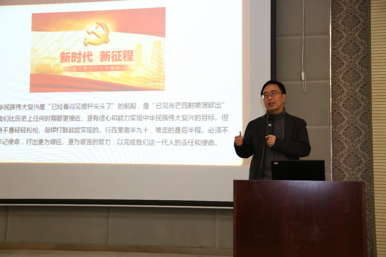 宣讲伊始,叶政博士以“中国特色社会主义新时代的深刻意蕴”为切入点,深入解读党的十九大精神。他指出,“经过长期努力,中国特色社会主义进入了新时代,这是我国发展新的历史方位”,党的十九大作出的这一重大政治论断,清晰地指出了党和国家事业所处的时代坐标,为明确下一阶段的历史任务、坚持和发展中国特色社会主义指明了方向。
