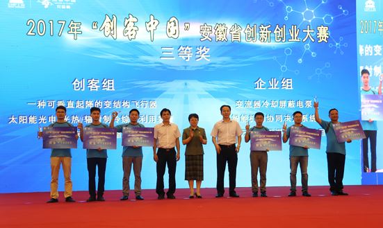 9月15日,2017年“创客中国”安徽省创新创业大赛决赛在合肥市举行。来自中国科学技术大学创客中心的项目“一种可垂直起降的变结构飞行器”和“太阳能光电-光热-辐射制冷综合利用装置”分别以总分第五、第六的好成绩双双获得创客组三等奖。