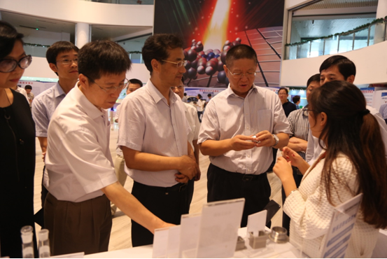 在未来中心B0层科技创新成果展厅,李晓超一行参观了解了智能语音、智能机器人、电子信息、装备制造、公共安全、新材料、生物医药、无人机、智慧新能源、新能源汽车等方面的科技创新成果,观看相关技术演示,并听取相关企业的经营和研发情况的介绍。在新材料展区,李晓超一行详细询问了利夫生物等先研院孵化企业的科技成果和产品应用情况,对农林废弃物生物转化技术等国际一流创新技术表示称赞。