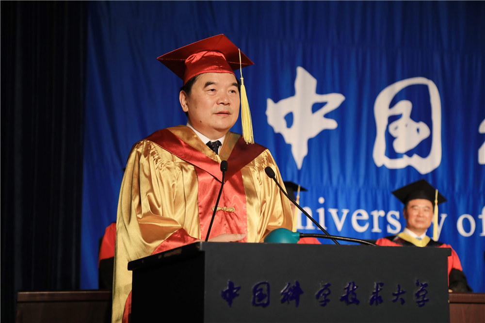 祝愿同学们前程锦绣、一生幸福!未来,无论你们面临的是顺境还是逆境,无论是成为叱咤风云的大师、名家,还是坚守平凡、默默耕耘,请记住,中国科大永远是你们可以依靠、可以信赖的温暖之家。