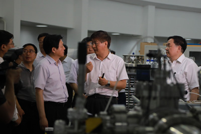 会后,在校领导和有关部门负责人的陪同下,刘伟平一行与安徽省委书记、省人大常委会主任李锦斌,安徽省委常委、组织部部长、常务副省长邓向阳及安徽省、合肥市有关部门负责人等实地考察了学校部分科研机构。在国家同步辐射实验室,听取了实验室主任陆亚林关于研究领域、研究目标、研究成果等方面的工作介绍。在量子科学实验卫星和量子通信京沪干线总控中心,听取了潘建伟院士关于量子京沪干线和量子科学实验卫星运行情况的汇报。