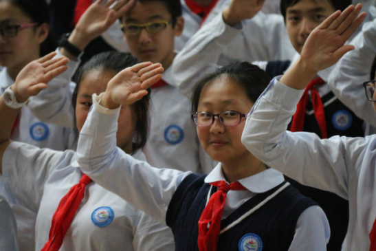 今年是中国共产主义青年团建团95周年暨纪念“五四”运动98周年。“我们是五月的鲜花,用青春拥抱时代;我们是初升的太阳,用生命点燃未来……”庄严的仪式见证了孩子们的成长,激扬的团歌给予了孩子们力量。此次入团仪式是我校“团、队”意识衔接教育的生动体现,也是贯彻从严治团决议、加强中学共青团改革的具体举措。青年是国家的未来、民族的希望,全体团员一定不忘初心、牢记使命,团结带领身边的青年共同刻苦学习、努力工作,为实现“两个一百年”奋斗目标,为实现中华民族伟大复兴的中国梦贡献青春的智慧和力量!