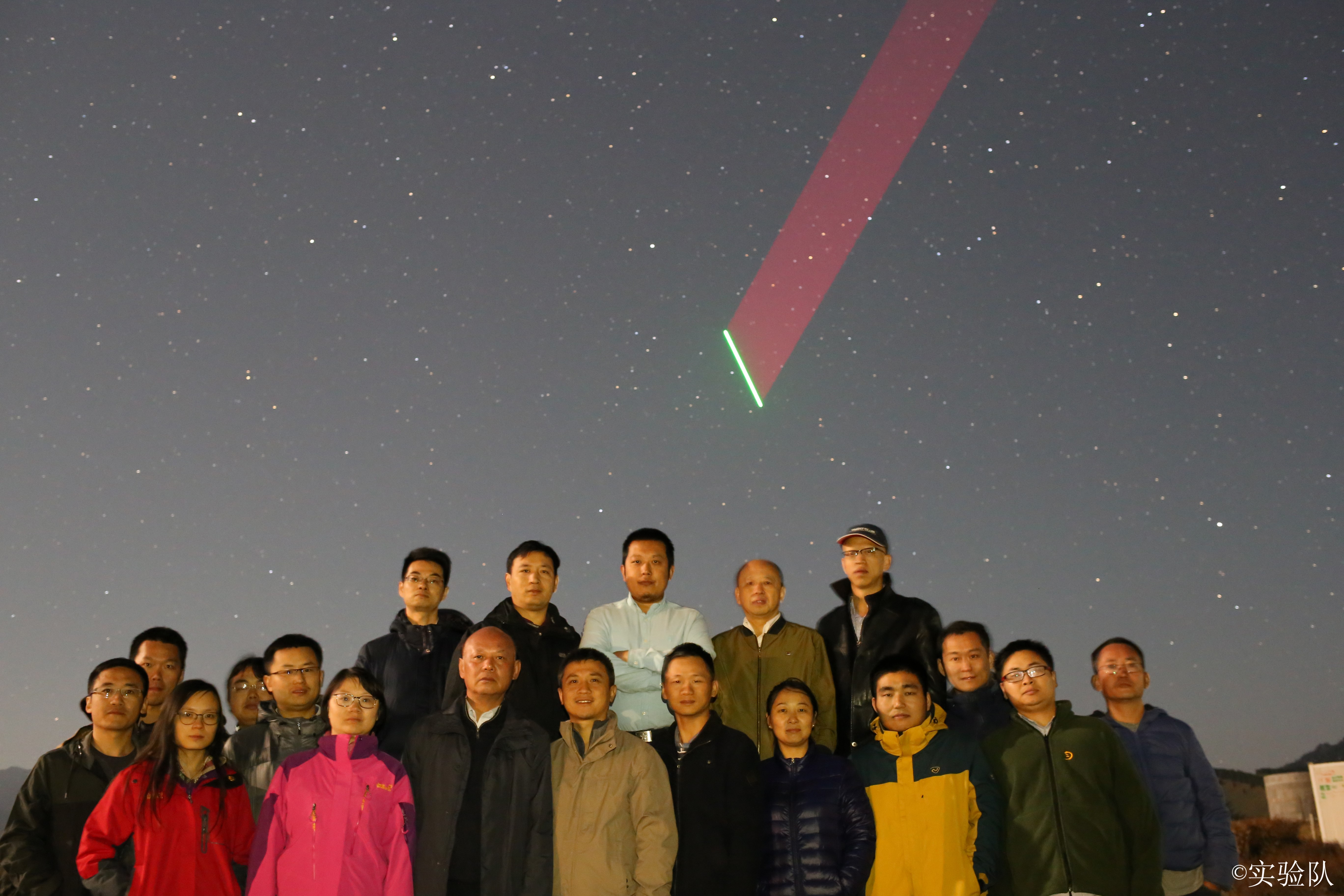 部分在轨测试科研人员与过境的“墨子号”合影