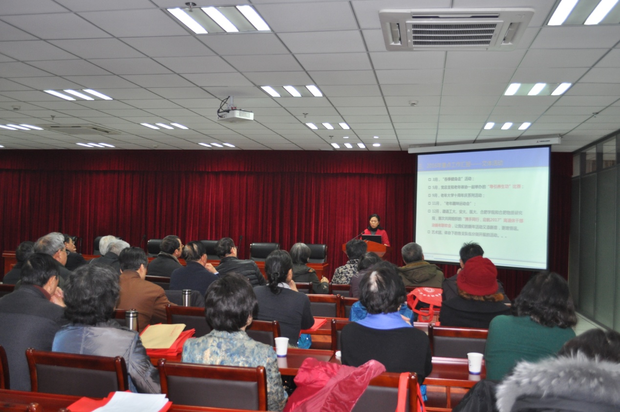 接着,离退办主任刘艳汇报了2016年离退办全年工作及2017年度工作计划。她从党支部建设、文体活动开展、活动平台建设、福利慰问帮扶、保健体检等八个方面介绍了离退办一年来的工作情况,并对2017年的工作作了安排。她特别强调,在2017年,要认真扎实抓好中办发(2016)3号文件和科发党字(2016)48号文件精神的贯彻落实;继续做好重大活动的策划和组织工作,不断满足老同志精神文化需求;增进与社区、社会联系,为老同志提供多渠道、多方面的养老服务;建成离退休干部管理信息系统,提高服务效率;加强离退休干部理论调研和信息宣传工作,更好地提升、指导离退休干部工作。