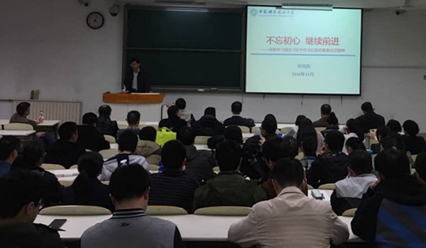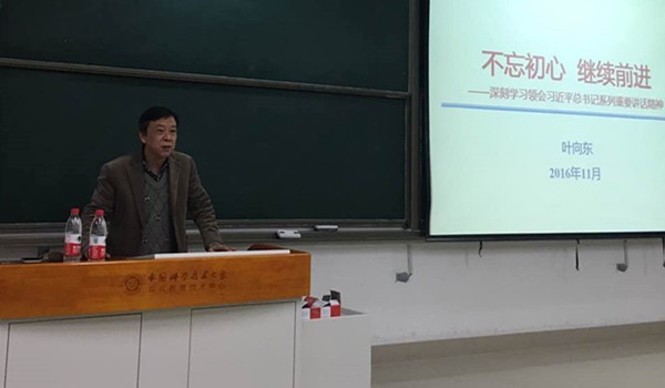 为深入学习领会习近平总书记系列重要讲话精神,11月16日下午,数学科学学院党委在5201教室举行“两学一做”第二次集体党课学习,邀请校党委副书记、纪委书记叶向东做“不忘初心,继续前进——深刻学习领会习近平总书记系列重要讲话精神”专题报告。学院三个教工党支部和四个学生党支部近百名师生党员参加了报告会,报告会由学院分党委书记、副院长邓建松主持。