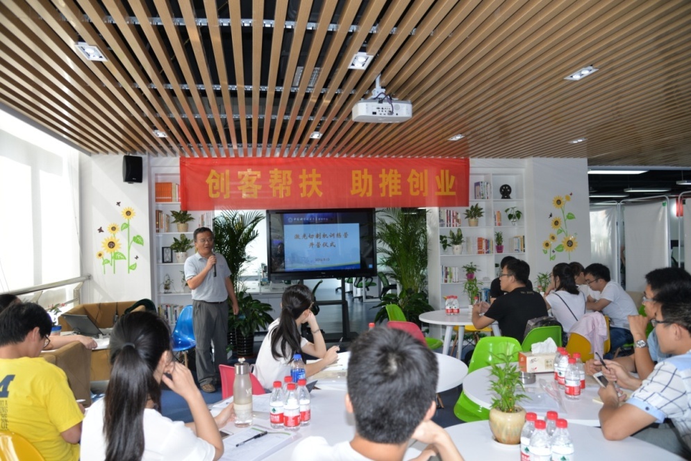 开营仪式上,中国科大先研院教育培训部部长曹一雄说,中国科大面向应用的创新层出不穷,创客中心就是要为大家提供一个创新的土壤,帮助大家把原创性的想法变成现实。希望大家多学习,多实践,好好把握这次培训机会,熟练掌握激光切割机操作技巧。
