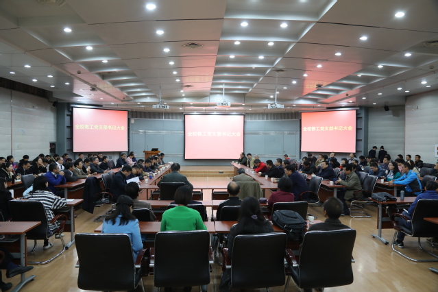 为贯彻落实全国组织工作会议精神,加强高校基层党组织的主体作用,促进支部间相互交流,切实提高我校党务工作者的综合素质和业务能力,11月7日下午,校党委在西区活动中心学术报告厅召开全校教工党支部书记大会,校党委书记舒歌群出席并讲话,全校党群部门主要负责人、各院级党组织主要负责人、党务秘书、教工党支部书记或支委参加了会议。会议由党委副书记、纪委书记叶向东主持。