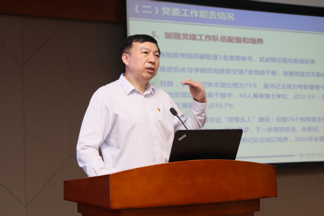 舒歌群表示,在中科院党组领导下,学校上下团结一致,以立德树人为根本任务,积极参与国家“双一流”、中国科学院“率先行动”计划升级版建设,深入实施“十三五”规划,全面深化综合改革,勇于创新、敢于超越、力争一流,在科学研究、第四轮学科评估、合肥综合性国家科学中心建设、筹建量子信息科学国家实验室、大科学装置集群效应、共建科大生命医学与科学部、建设科大信息与智能学部、高新园区建设等方面取得了一定成绩。学校坚持把教师队伍建设作为基础工作,坚持引进、培养、稳定并重方针,着力建设一支规模适度、结构优化、学术优异、富有自主创新能力和国际竞争力的一流教师队伍。学校目前拥有各类高层次人才 422人(不重复统计),占固定教师总数 33.3%;“四青”人才不重复统计217人,约占高层次人才的51.4%。