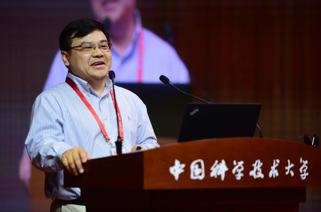 中国科大党委书记舒歌群首先代表中国科大向各位与会嘉宾表示热烈欢迎。他在致辞中指出,中国科大始终弘扬“崇尚科学、追求卓越”的创新精神,注重增强学生的创新创业能力,培养适应创新型国家建设需要的高水平人才。学校积极深化“双创”教育改革,重视顶层设计,初步构建了“普及、提升、拔尖”三层次“金字塔式”的“双创”培养体系,形成了以校园“极客”文化为核心,以各院系和机关部门协同为载体,以校友与社会资源为外延的工作格局。期待诸位杰出校友在这场高峰对话中擦出智慧的火花,启迪创新的思维,收获丰硕的成果。