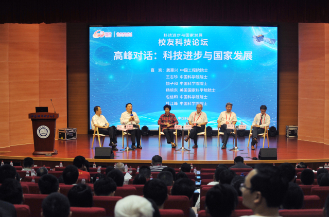 在随后的“科技进步与国家发展”高峰对话环节,还特别邀请到58级校友、中国工程院院士、中国科大信息科学技术学院院长龚惠兴,与王志珍、饶子和、杨培东、包信和、杜江峰互动交流。