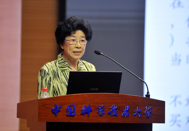 在校友报告环节,王志珍院士作题为“感恩科大,祝福科大”的报告。“1974年,中国科学院就在科大办了外语培训班,这在当时绝对是首创。而我有幸回到母校,参加了李佩先生等老师执教的一年制英语训练班,我现在的口语也是当时打下的基础。”王志珍回忆起在科大读书的岁月,她说,当时的教育界强调系和专业的专门化,而中国科大强调宽口径培养人才。各系用三年半时间学习数理化基础课,要求十分严格。生物物理系的学生与高分子化学的学生一起学物理,与高能物理的学生一起学化学,打下了扎实的数理化基础。“当时各系的系主任都是学部委员(院士),我们有比其他大学学生更多的机会与科学大师直接对话。”王志珍说,尊崇学术是科大文化的“基本色”,科大是真正的大学,始终保持着“圣洁”和“宁静”。科大人不跟风、不盲从、不左顾右盼,表现出对科学原则和科学精神的执着追求,从而拥有了她与众不同的气质和魅力。
