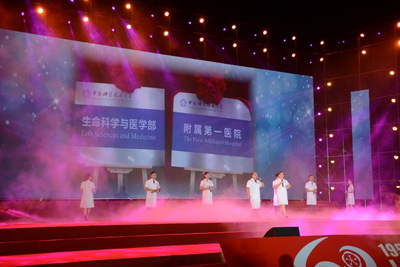晚会第三篇章“风劲·繁星成印”。“风劲”寓意科大在新时代强劲的东风中,像校徽上的火箭一般一飞冲天高速发展,传承科教报国的责任与使命;以“繁星”为主题既展现了科大学子在取得众多科研成果的同时,踏踏实实一步一个脚印地坚实发展,描绘着未来科大的美好蓝图,也饱含着全体科大人对母校的祝福与期待。六十年初心不改,新时代东风正劲,科大正一步一个脚印向建设中国特色世界一流大学努力。大力支持新工科,量子信息科学、人工智能与大数据、工程学等学科正有条不紊地加强建设;部署“科大新医学”,理工医交叉融合、医教研协调创新、生命科学和医学一体化发展。作为科大新医学发展的有生力量,附属第一医院医生们带来了歌曲《最美的信仰》。救死扶伤是最美的信仰,科教报国是崇高的理想,科大一贯秉承着以学生发展为本的育人方针,谋划学科布局,培养了一批又一批活跃在各个领域的杰出校友,他们用智慧创造价值,用创新颠覆生活。