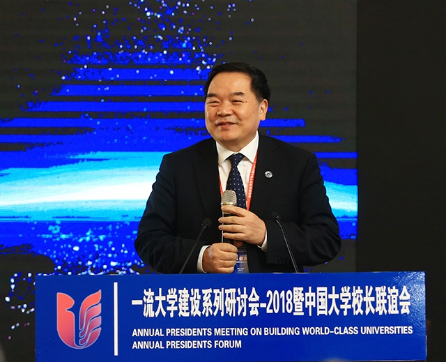 10月12日,“一流大学建设系列研讨会—2018”暨中国大学校长联谊会在哈尔滨工业大学举行,来自中国内地9所高校(C9)和香港三所高校(HK3)共12所高校的代表齐聚松花江畔,深入学习贯彻全国教育大会精神,共话面向2030的中国教育现代化事业,共同探索教育强国和新时代中国特色世界一流大学建设之路。我校包信和校长出席会议,并作题为“红专并进、科教结合,努力培养一流创新人才”的大会报告。党政办公室、发展和改革办公室、发展规划处、教务处等单位负责人陪同出席会议。