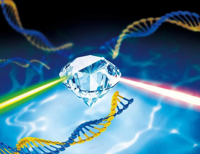 图注:基于钻石传感器实现水溶液中的DNA分子探测
