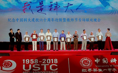 在建校六十周年和教师节到来之际,学校向建校初期即入校工作的教职工颁发中国科学技术大学建校六十周年“特别纪念证书”。蒋一代表学校对各位老师表达了教师节的祝福,并向2018级新同学表示了热烈的欢迎。在全场掌声中,蒋一副书记宣读了23位教职工名单,包信和校长为莅临现场的11位教职工颁发了纪念证书,表达了对老一辈教职员工诚挚的谢意与敬意,以纪念他们为学校创建做出的积极贡献。