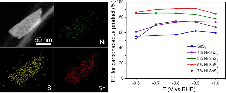 镍掺杂二硫化锡纳米片与电还原二氧化碳性能