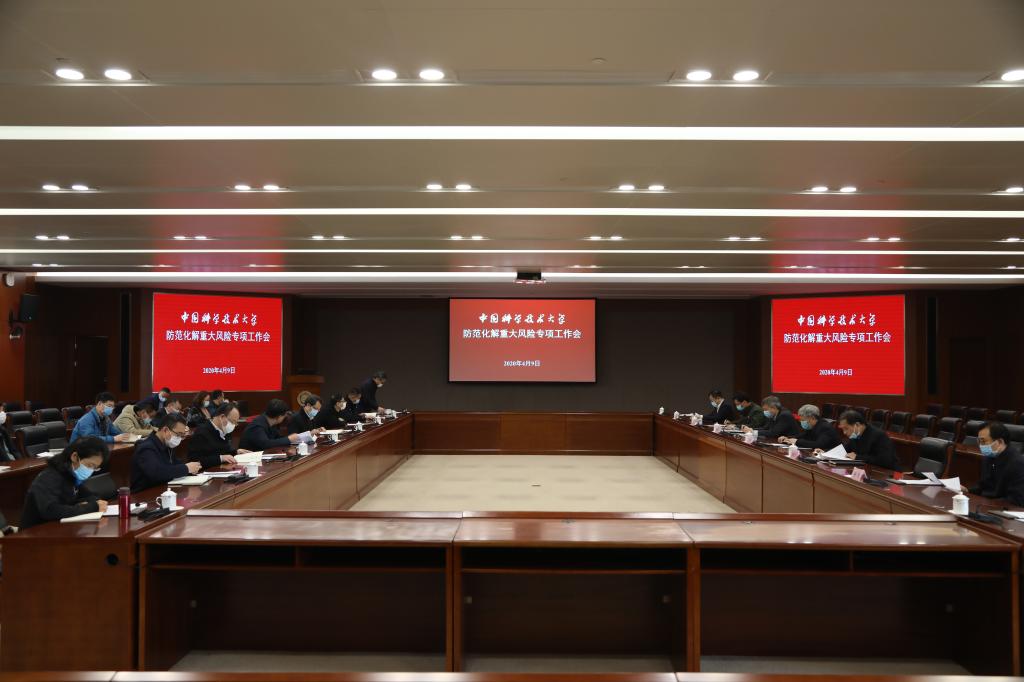 4月9日上午,学校在东活五楼报告厅召开2020年度防范化解重大风险专项工作会。会议由校党委书记舒歌群主持,校领导朱长飞、蒋一、王晓平、杜江峰、傅尧及相关部门主要负责人参加会议。