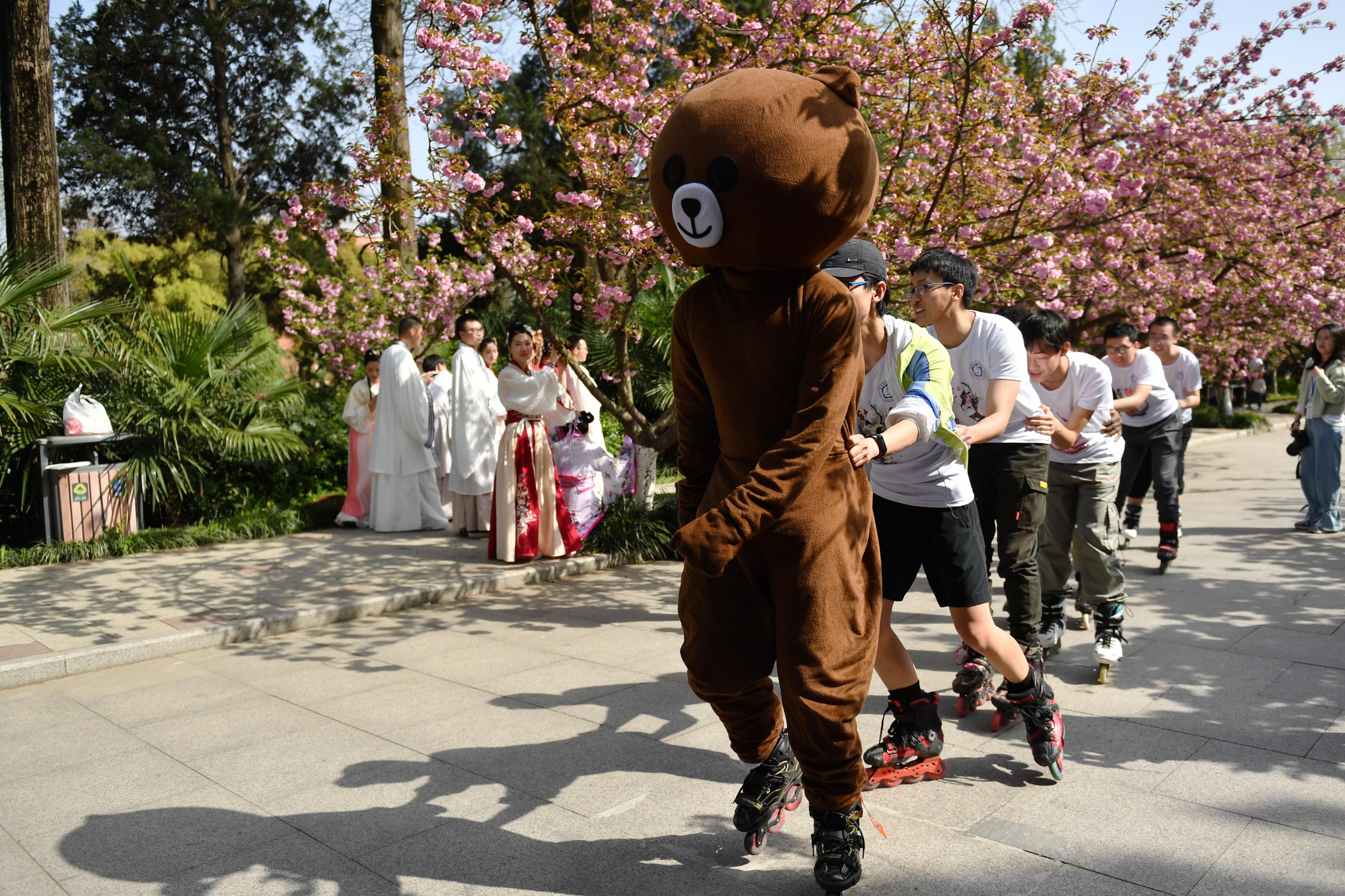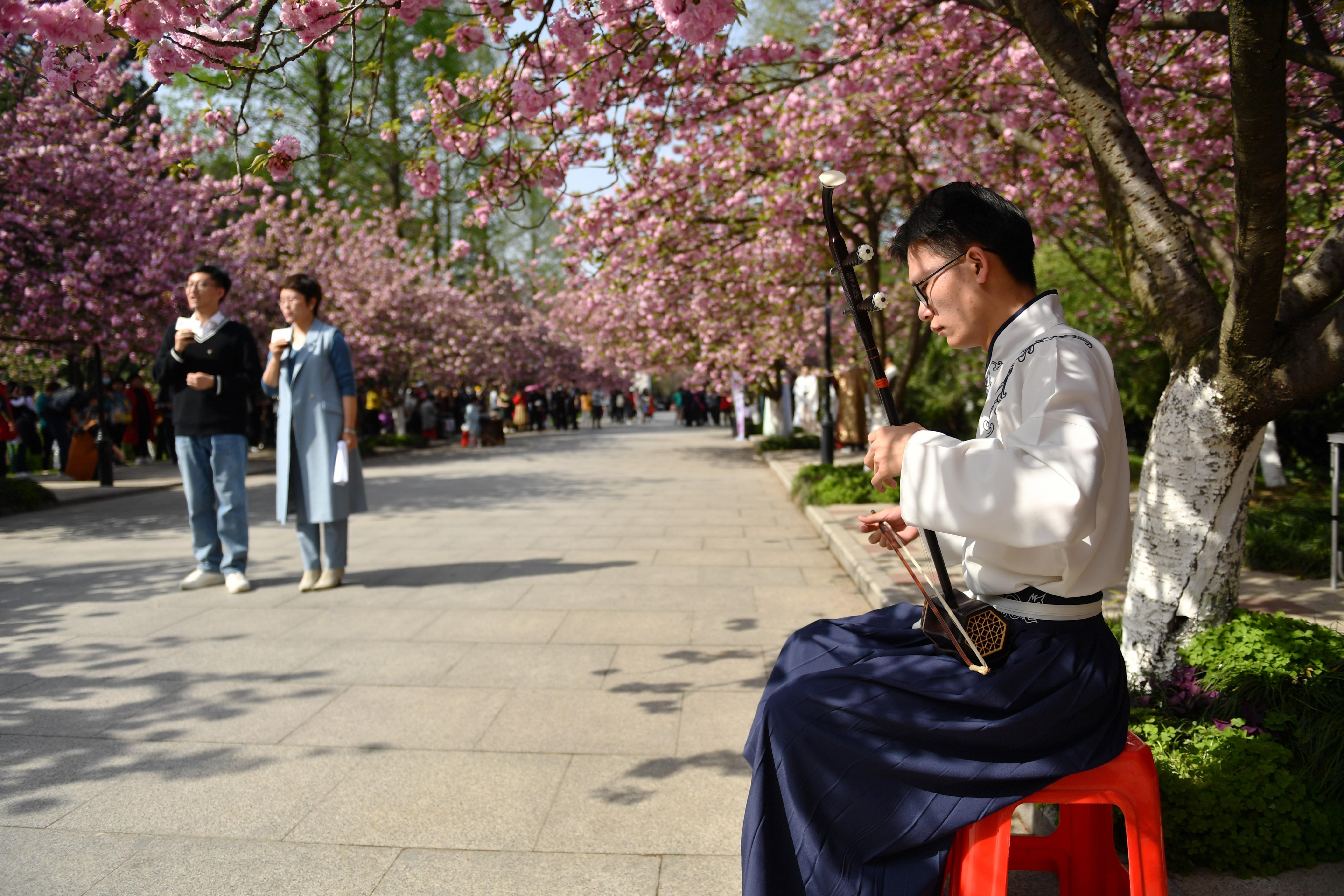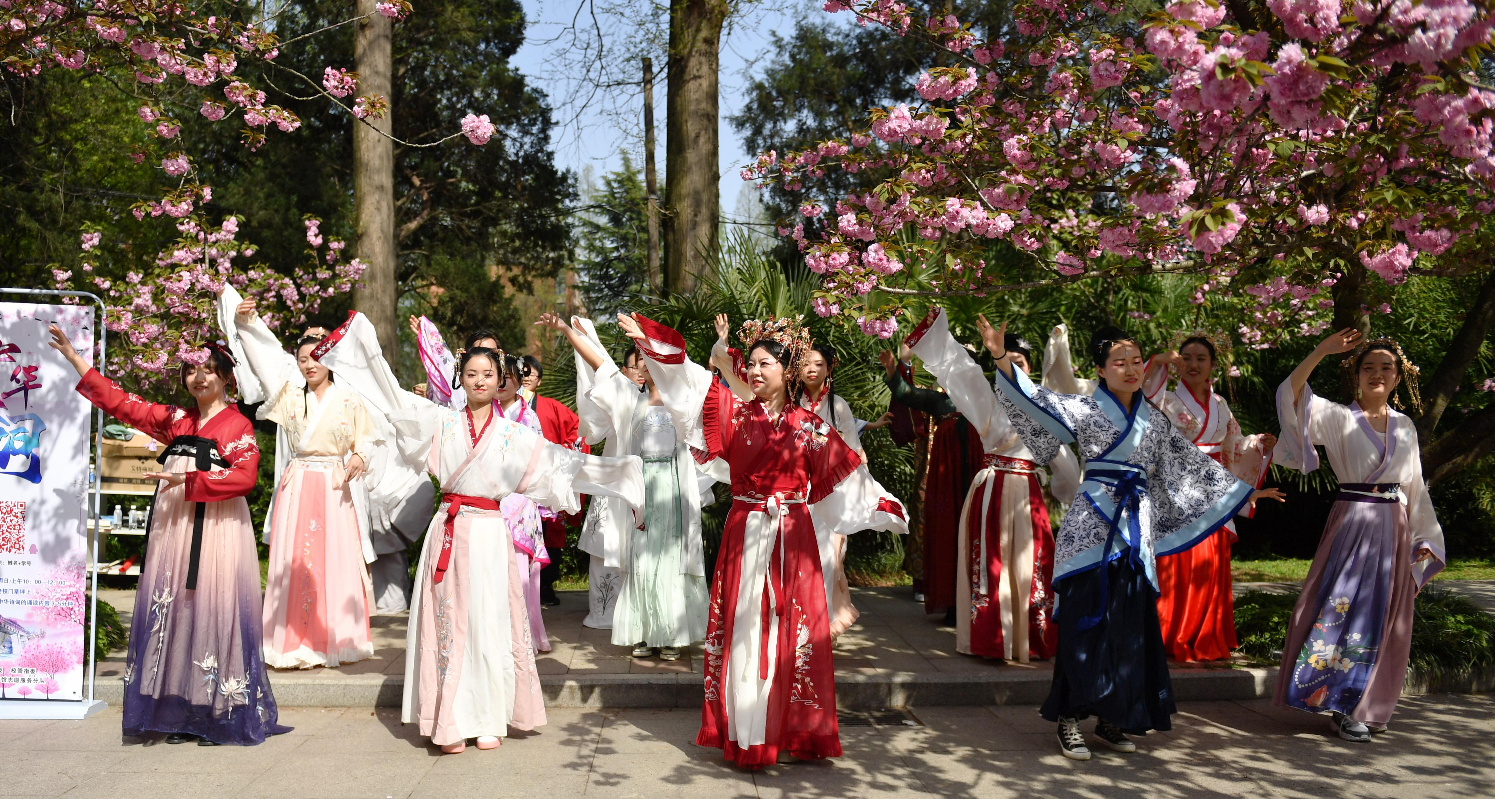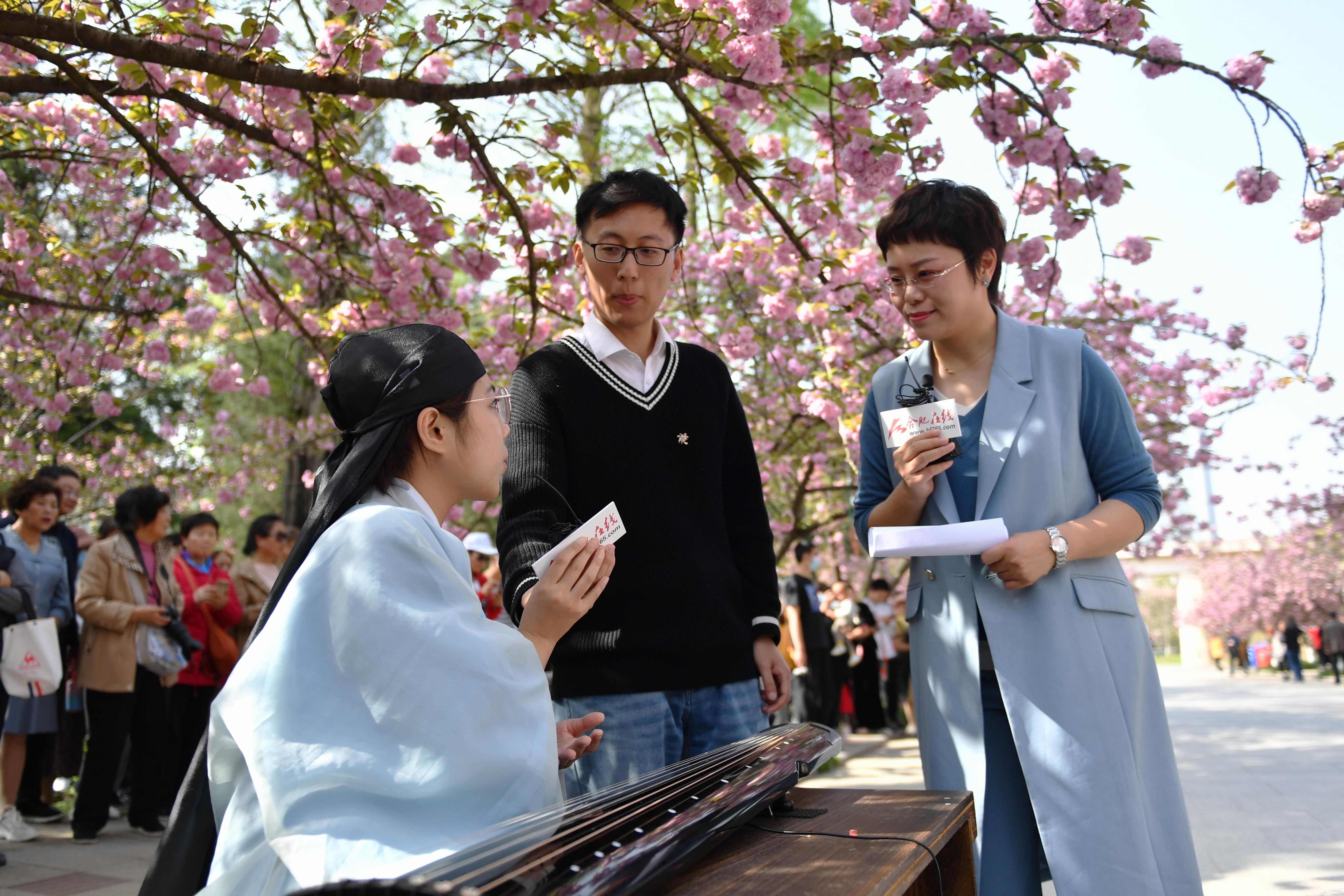 今年的“云赏樱”恰逢中国科大第五届溯风传统文化月开幕,美不胜收的樱花与底蕴厚重的文化,交织出校园靓丽的春光。东区樱花大道上,书法、古琴、二胡、舞蹈、轮滑、朗诵等表演精彩纷呈,处处可感受到新时代大学生的文化自信和青春气息。西区樱花坡上,教职工老年合唱团倾情演绎《再唱山歌给党听》。“迎接着永恒的东风,把红旗高举起来,插上科学的高峰……”校歌《永恒的东风》,雄壮而豪迈,代表着一代代科大人薪火相传、接力奋进的精神传承,“云赏樱”最后在老年合唱团、学生合唱团的接力合唱校歌中落下帷幕。