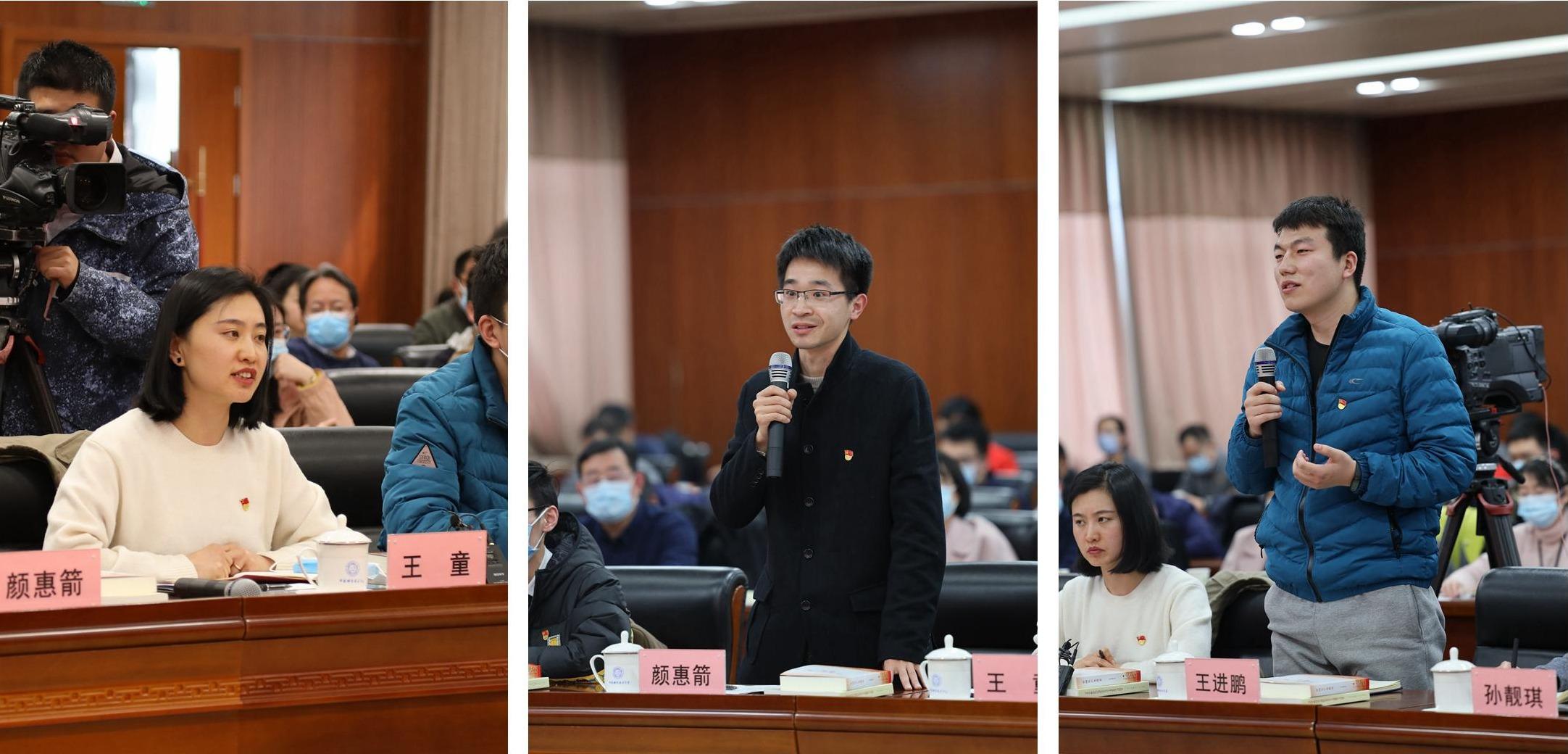 座谈会上,冷溶、陶明伦、舒歌群,人民出版社副社长副总编陈鹏鸣、安徽省委宣传部副部长李兵共同为师生代表赠书。安徽省委宣传部、中国科大“两委委员”、机关党群部门负责人、院级党组织书记以及思政课教师代表、辅导员代表、学生代表等出席座谈会。