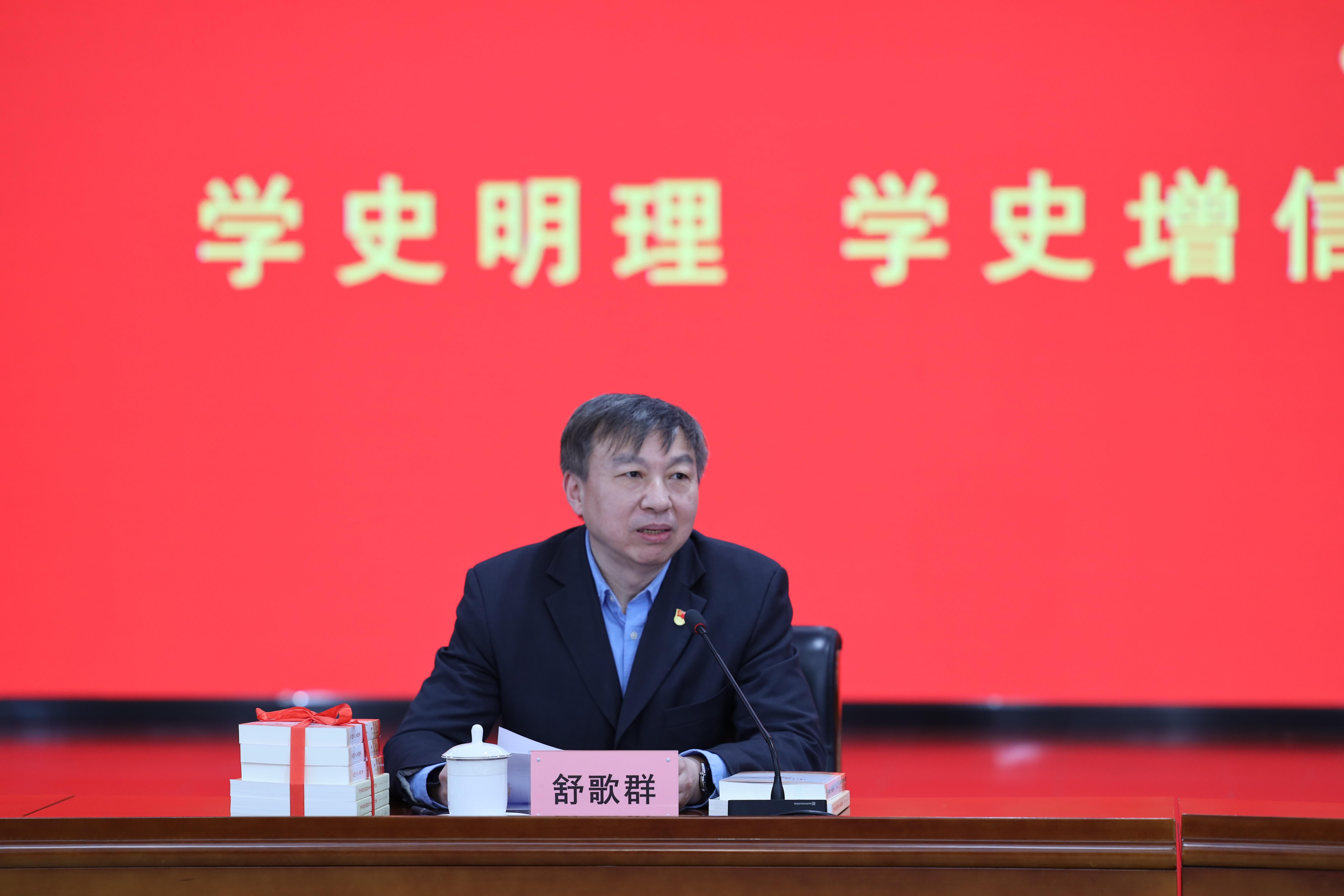 舒歌群在主持座谈会时指出,在全党开展党史学习教育,是党中央立足党的百年历史新起点、统筹中华民族伟大复兴战略全局和世界百年未有之大变局、为动员全党全国满怀信心投身全面建设社会主义现代化国家而作出的重大决策。在党史学习教育开展的开始阶段,听取中央宣讲团宣讲将能促进学校进一步把思想和行动统一到以习近平同志为核心的党中央的决策部署上来,进一步高标准、高质量做好党史学习教育工作。全校广大党员干部和师生员工要在党史学习教育中砥砺初心使命、激发实干精神,潜心立德树人、执着攻关创新,奋力开启新阶段建设中国特色、科大风格的世界一流大学新征程。